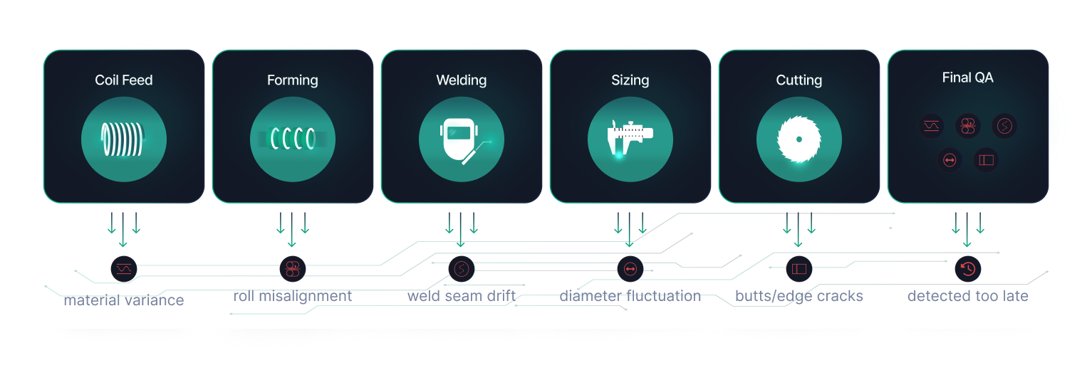 Skilled tube mill operators are in short supply. Without AI, there's no consistent, real-time guidance for detecting and correcting process deviations.